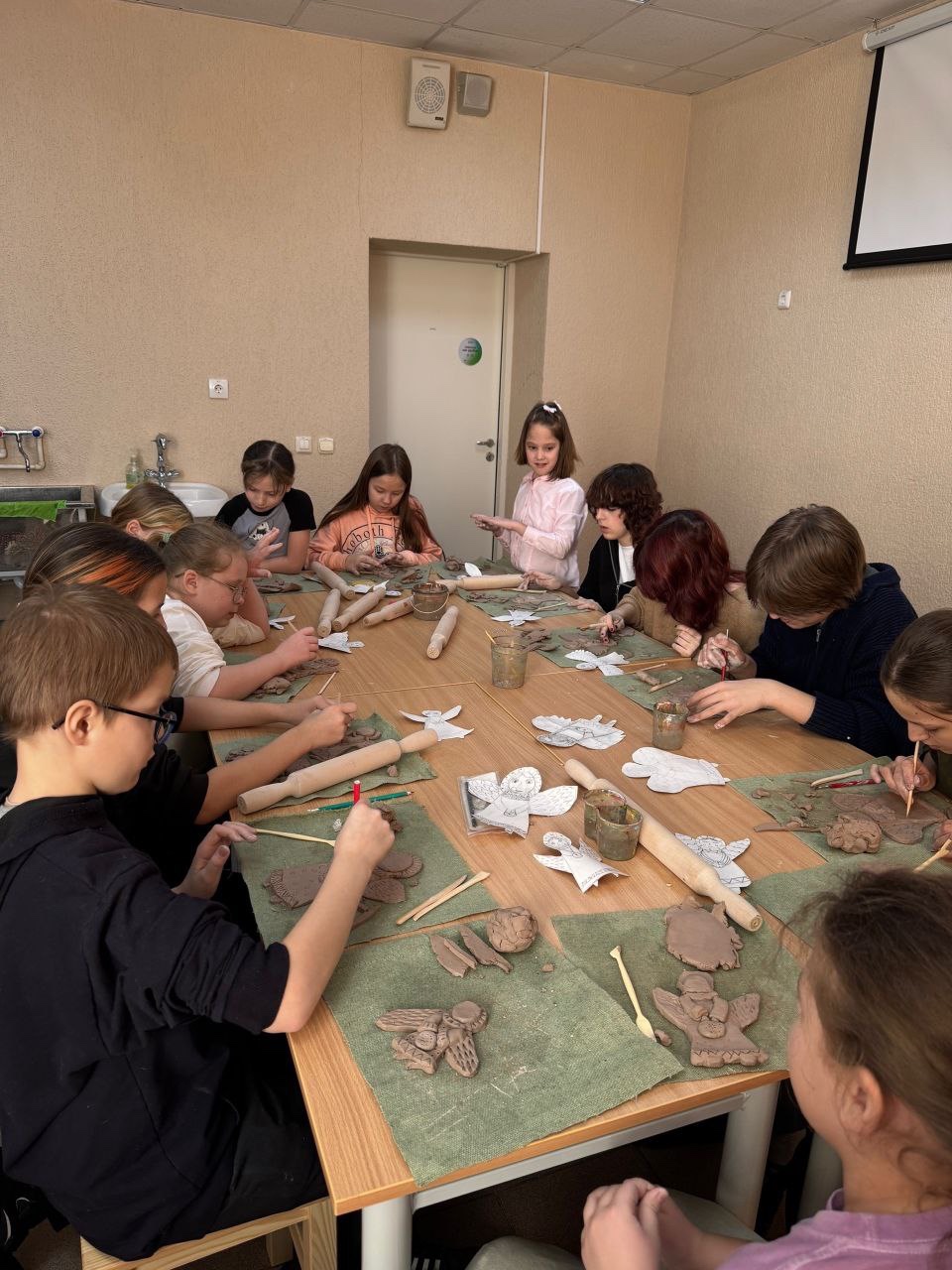 Секреты керамики в школе постигают 30 учеников ремесленного класса. На одном из недавних занятий дети научились делать ангелов: сначала с помощью специальных стиков вырезали фигурки из равномерно раскатанной глины. После нанесения рельефных линий и узоров ангелы отправятся в печь, которая закрепит материал, сделает глину твердой и подходящей для нанесения красок.