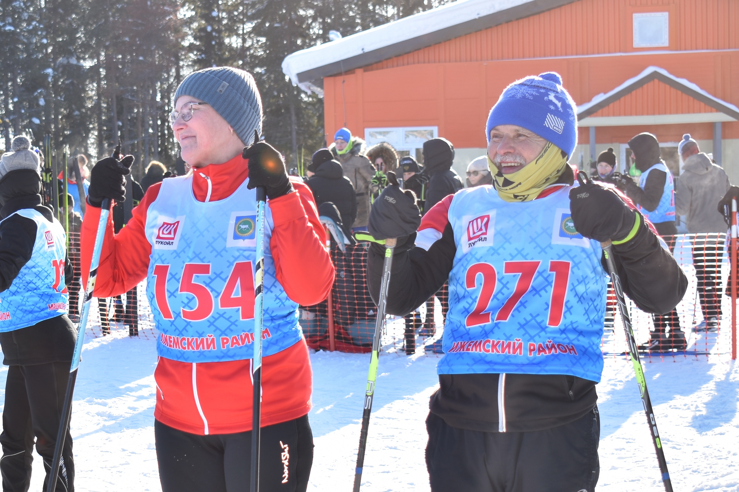 На торжественном построении у новой лыжной базы, построенной при поддержке Компании «ЛУКОЙЛ», участников приветствовали глава района - руководитель администрации Игорь Норкин и главный судья соревнований, начальник отдела физкультуры и спорта Валерий Рочев.