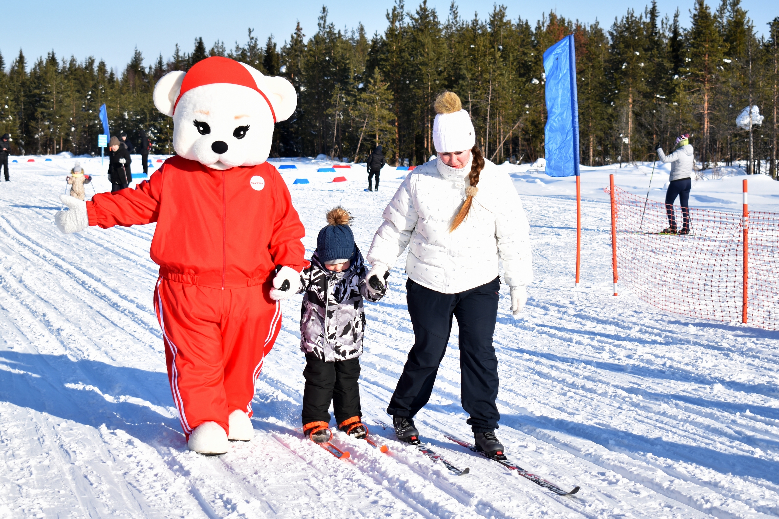 На торжественном построении вместе с Умкой, большим ростовым белым медведем, провели физзарядку и разогревшись, направились к трассе.