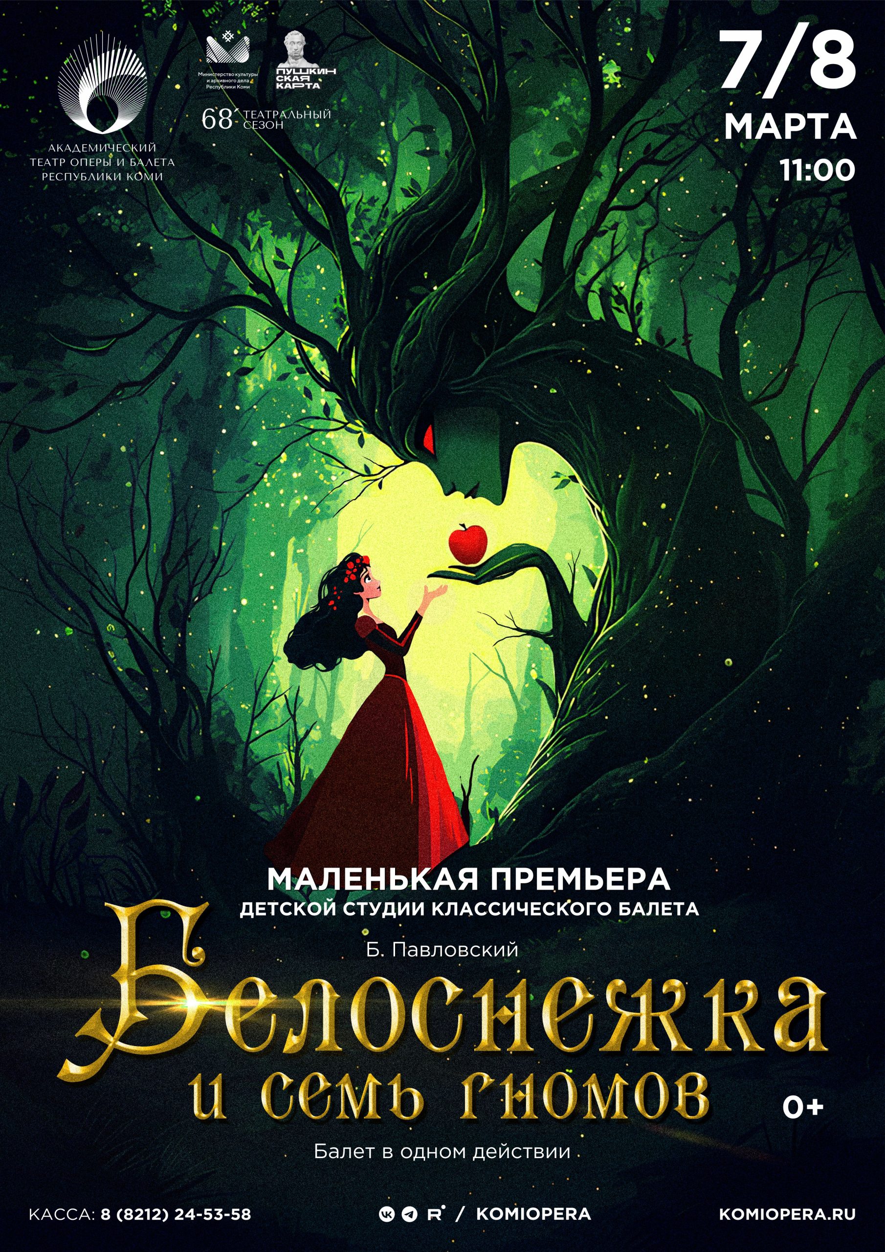 «Белоснежка и семь гномов» - сказочный балет для детей и для взрослых, которых он вернет в мир детства. Интересный, захватывающий сюжет спектакля, волшебная музыка и зрелищная хореография в исполнении юных артистов балетной студии Академического театра оперы и балета Республики Коми никого не оставят равнодушным.