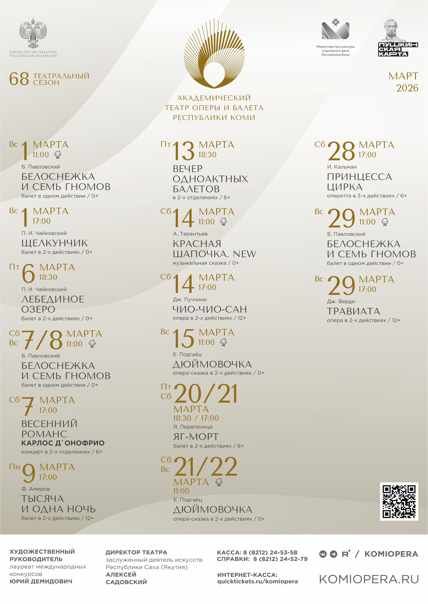 Узнайте, какие события ждут вас в марте в театре оперы и балета Коми.