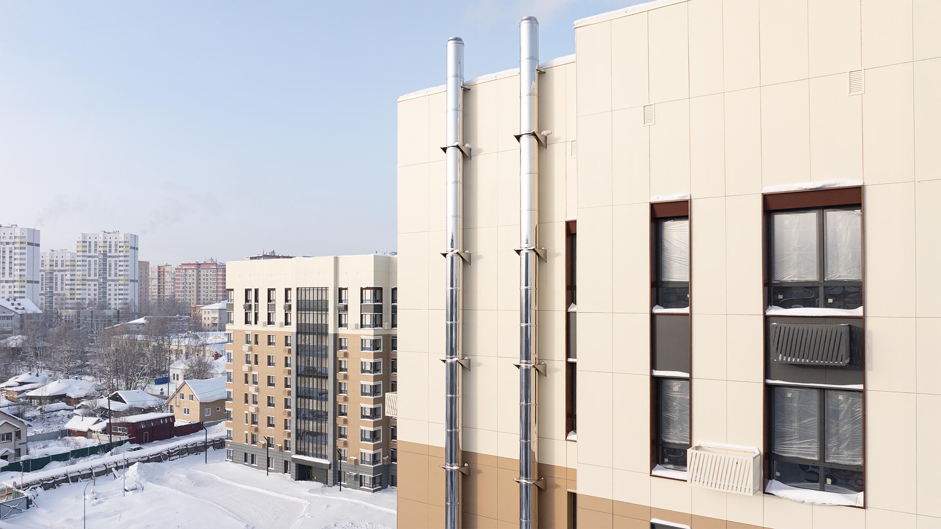 - Красивый дом всего на девять этажей. Фасад природных оттенков напоминает срез одноимённого камня.Чтобы сохранить его внешний вид, СКАТ разместил на стенах корзины для кондиционеров.