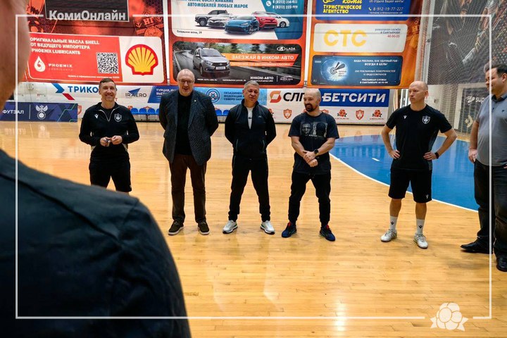 Перед началом тренировки сыктывкарской команды Президент Федерации футбола Республики Коми, Председатель Наблюдательного совета ФК "Новая генерация" Юрий Болобонов представил гостей и рассказал о дружественных отношениях двух Федераций.