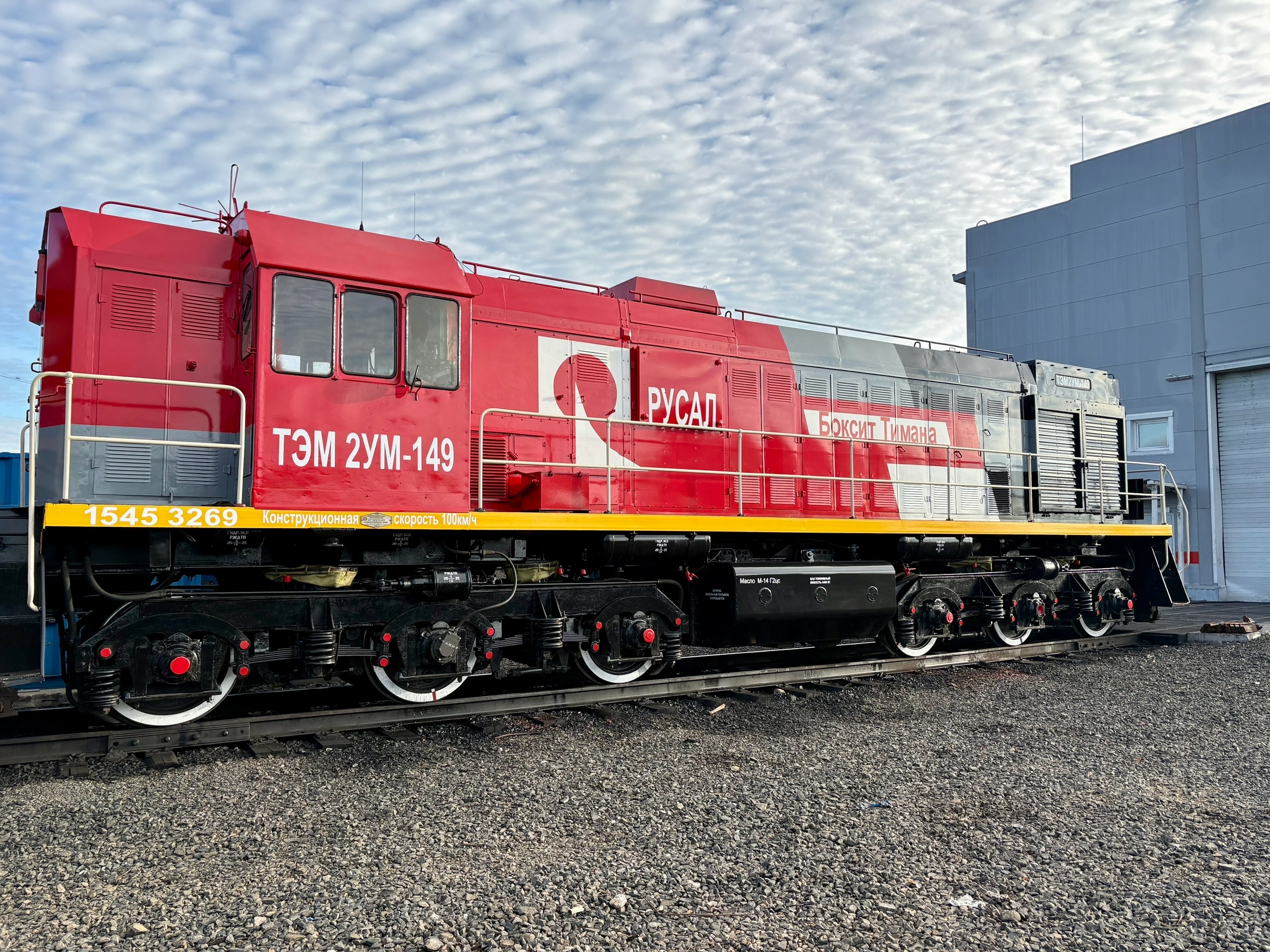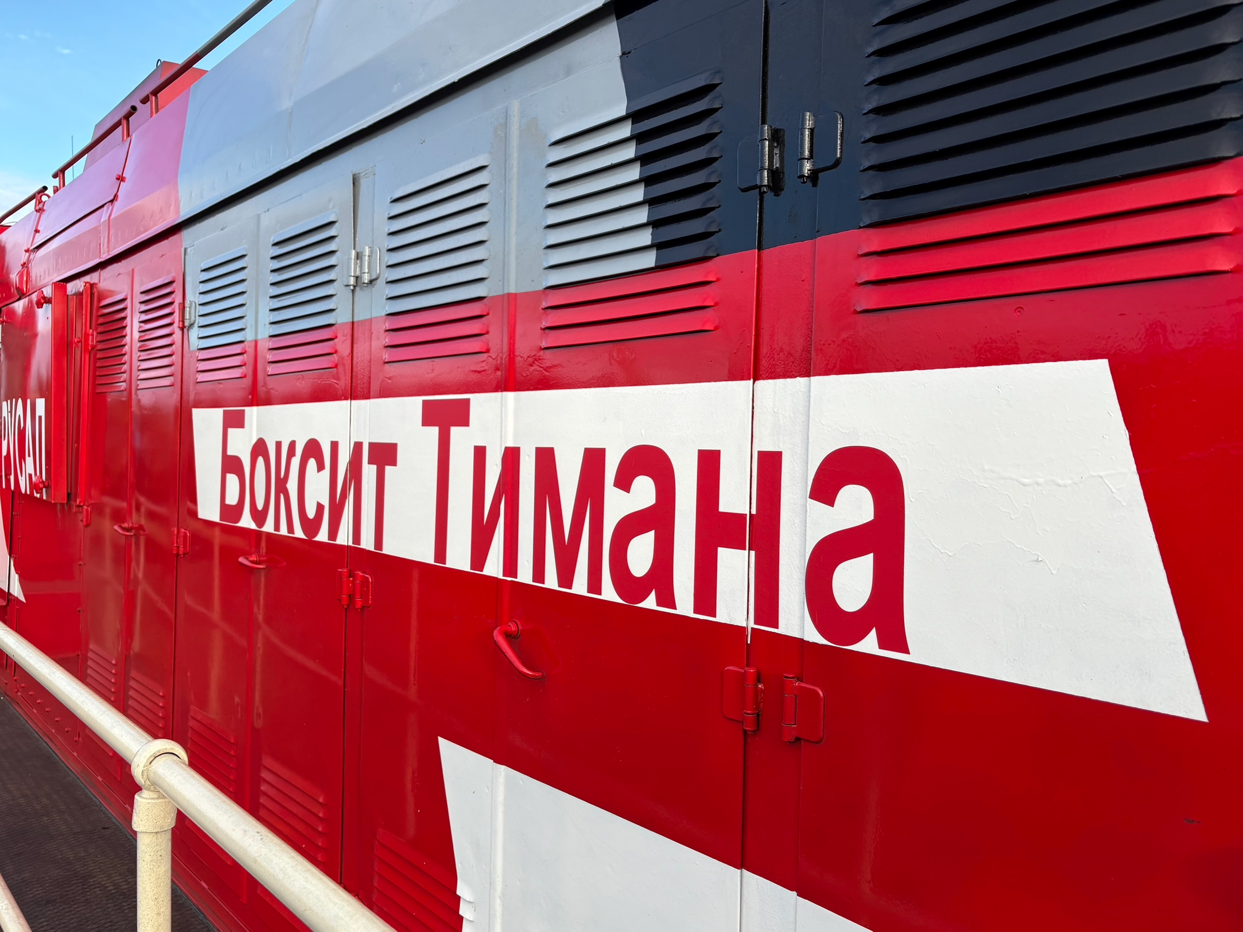 Это яркий маневровый локомотив, окрашенный в фирменные цвета РУСАЛа. Для подвижного состава «Боксита Тимана» разработан современный промышленный дизайн, который никого не оставит равнодушным.