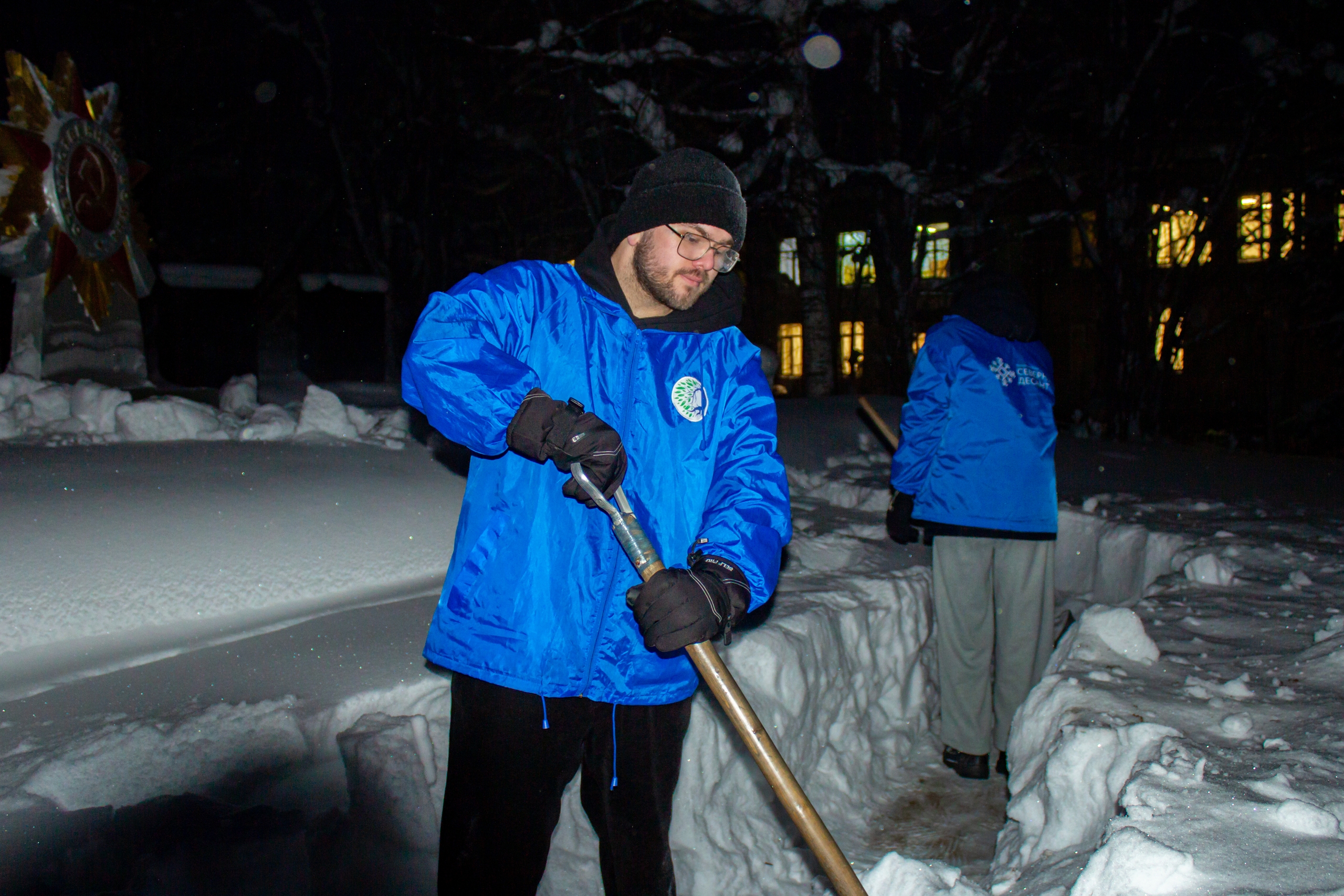 Вечером же ребята вышли чистить дорожку к памятнику участникам Великой Отечественной войны и прилегающую к нему территорию. Почистили, привели в порядок не ради галочки, а от всего сердца.