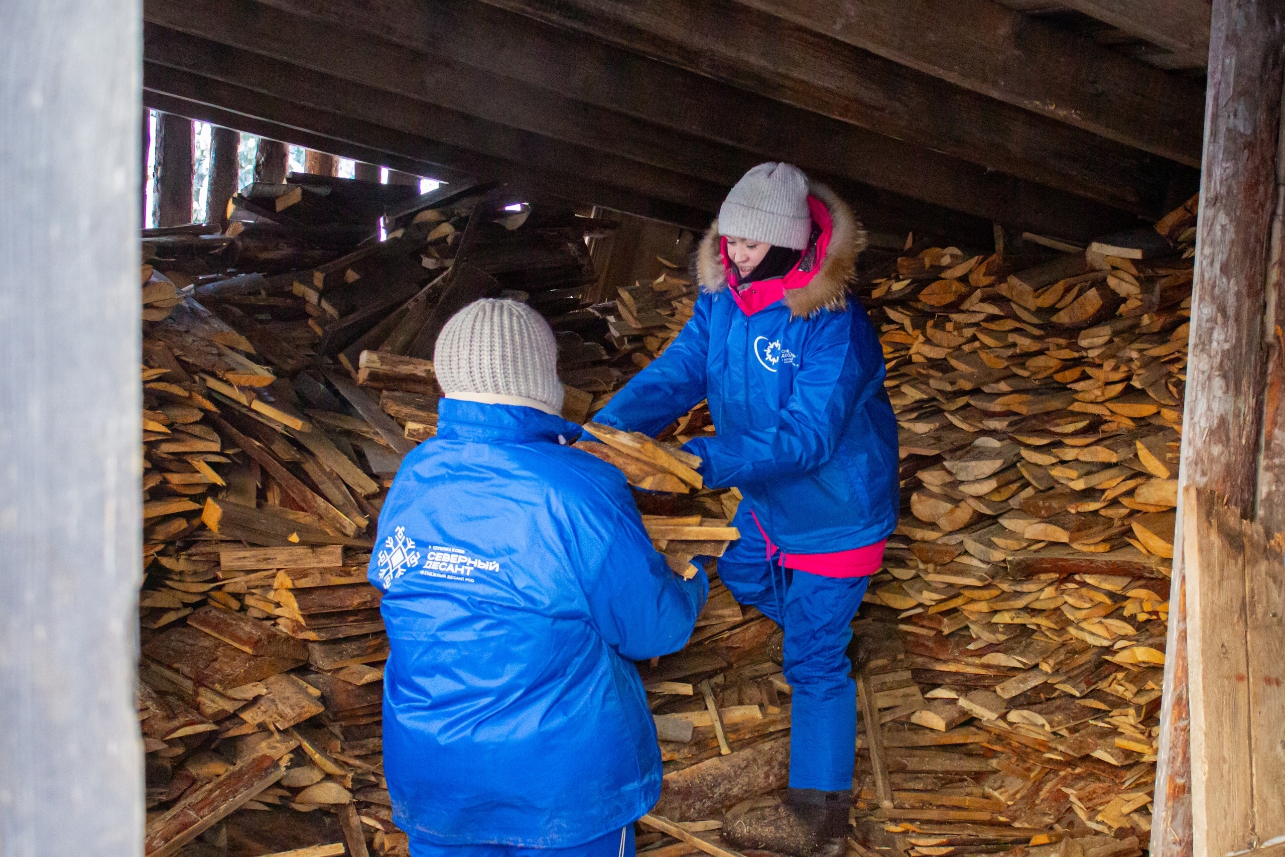 Утром второго дня пребывания в Ыбе молодёжь помогла расчистить территорию Свято-Вознесенского храма от снега. Особое внимание уделили двум пожилым прихожанам - вместе аккуратно и безопасно убрали снег с крыши их домов. Также завершили работы на территории Серафимовского женского монастыря.