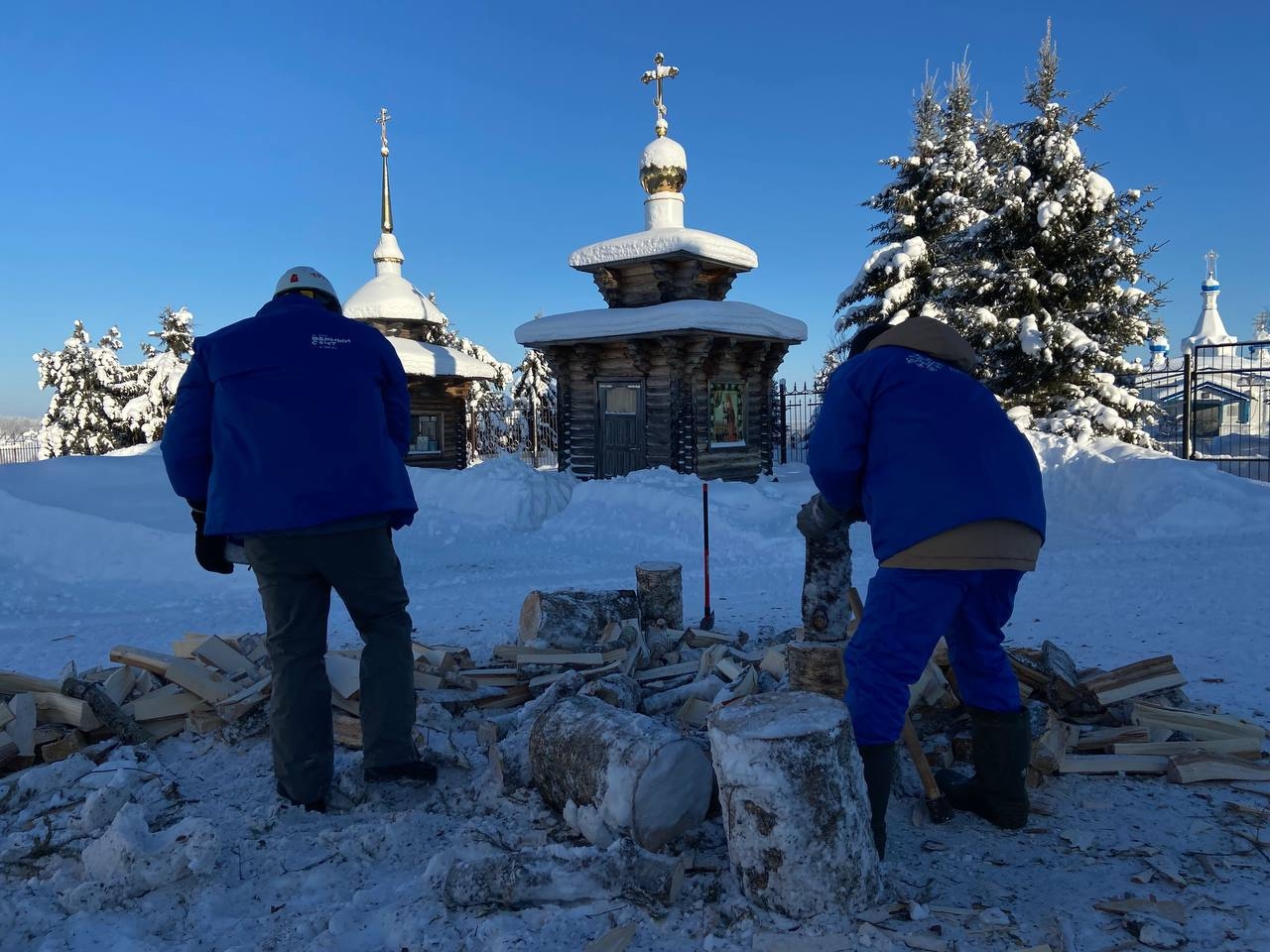 Без лишних слов взяли в руки топоры и лопаты: кололи дрова, складывали их в аккуратные поленницы, чистили дорожки от снега. В морозный январский день их труд стал настоящей поддержкой для обители.