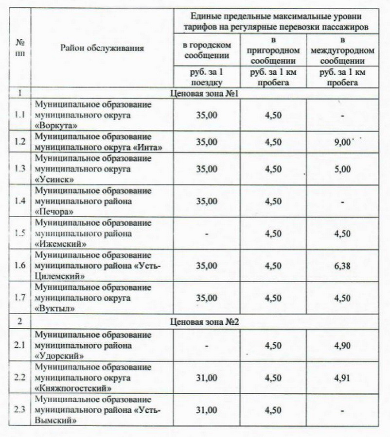 Комитет Коми по тарифам утвердил приказ об установлении единых предельных максимальных уровней тарифов на регулярные перевозки пассажиров и багажа автомобильным транспортом по муниципальным маршрутам регулярных перевозок. Действие тарифов будет распространяться на перевозчиков, в отношении которых не принято решение об установлении индивидуальных тарифов или их предельных уровней. Их начнут применять с 2026 года.