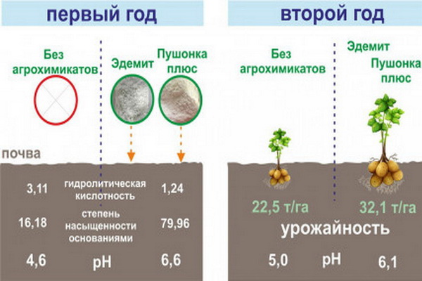 Изучив состав отходов, ученые подобрали оптимальные рецептуры агрохимикатов. Двухлетние полевые эксперименты дали впечатляющие результаты. Нормализуется кислотность, улучшается химия почвы, растет урожай и качество продукции. При этом клубни стали полезнее: в них выросло содержание сухого вещества, крахмала и витамина С, а количество нитратов снизилось.