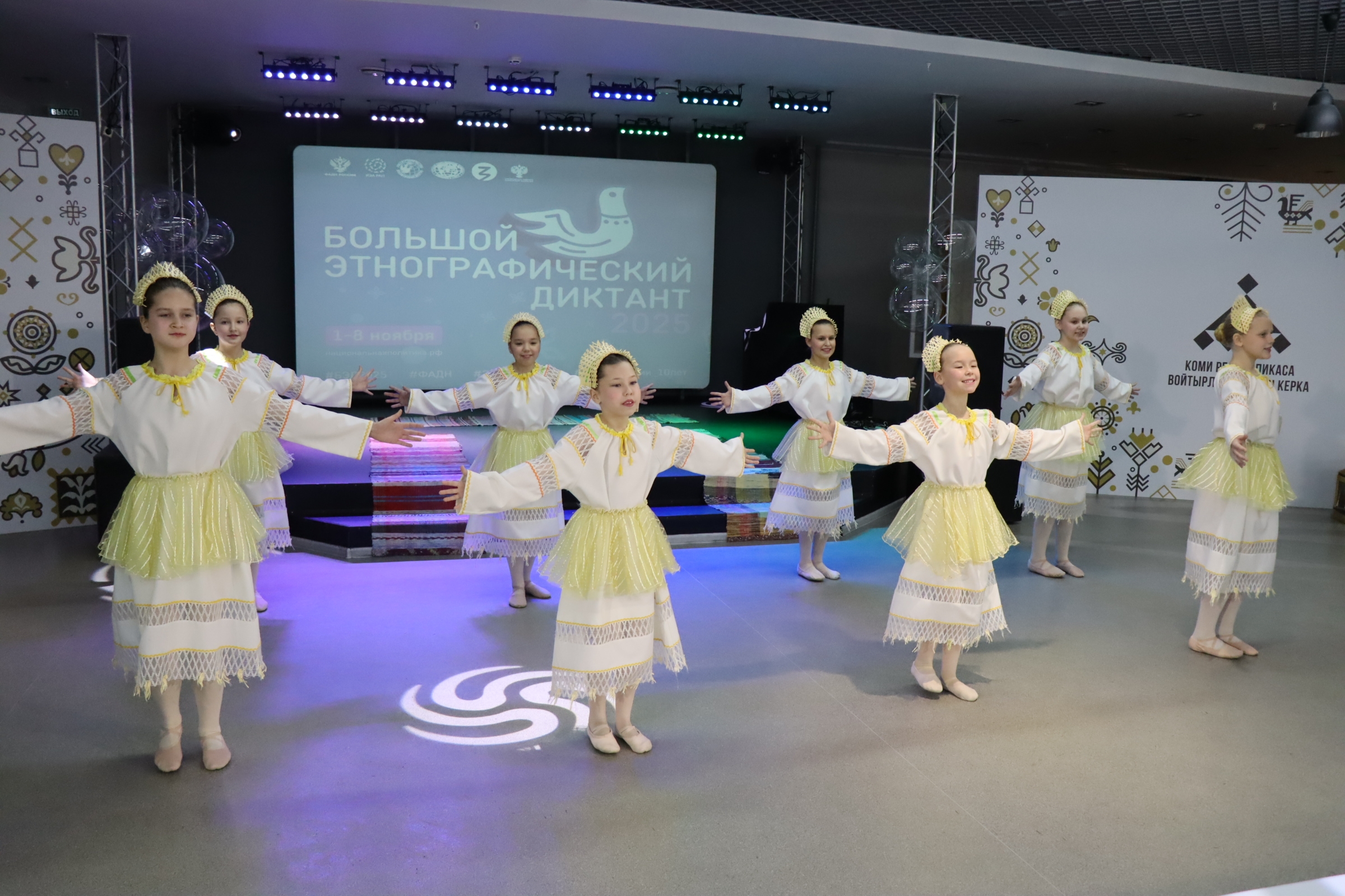 Перед началом диктанта творческий подарок для всех присутствующих подготовил образцовый детский коллектив Республики Коми – ансамбль народного танца «Шондi» Детской школы искусств г. Сыктывкар.