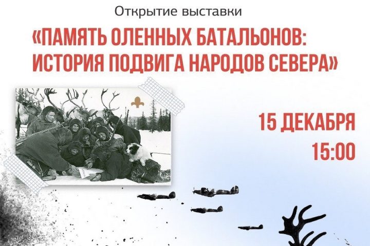 В Доме дружбы народов Республики Коми 15 декабря в 15:00 состоится торжественное открытие масштабной выставки «Память оленных батальонов: история подвига народов Севера». Проект реализуется в особый для страны период – Год защитника Отечества в России и Год героев в Республике Коми – и призван напомнить об одной из самых героических и малоизвестных страниц Великой Отечественной войны.