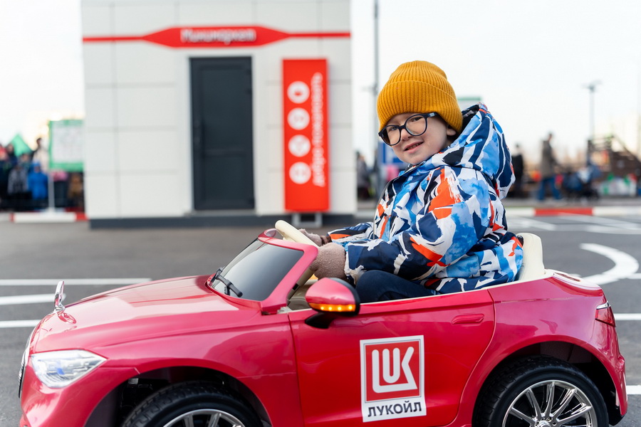 Пятилетние Оля и Настя первыми оценили детскую АЗС – девочки выбрали по мини-внедорожнику, чтобы не спорить, и продемонстрировали родителям навыки вождения.