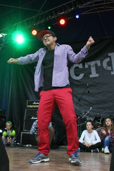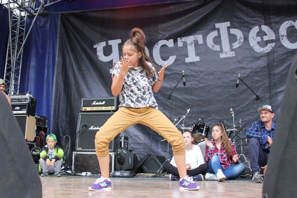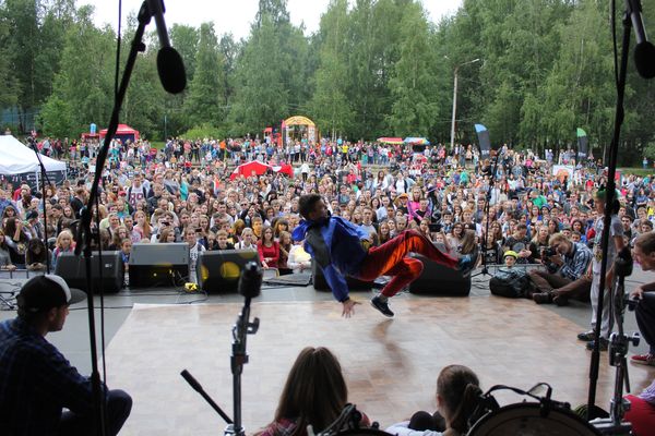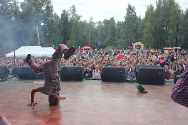 Чуть позже они перебрались на сцену, и тогда возле нее стало совсем не протолкнуться: несколько финалистов сражались за зрительские аплодисменты – именно так определялся победитель. На разогреве у танцоров была группа URS, которая зачитала очень смешной рэп о Сыктывкаре.