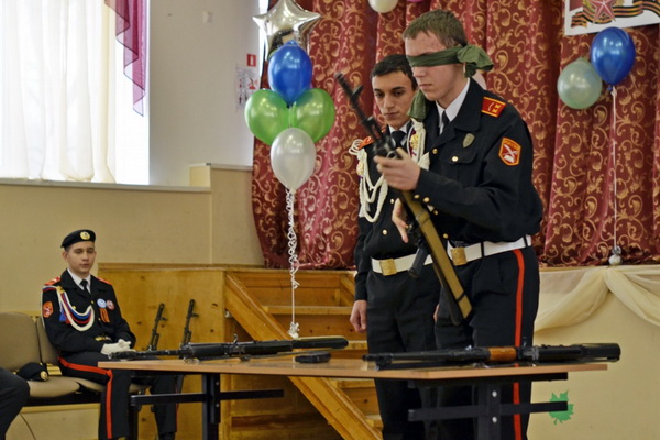В ухтинской школе №18 24 октября кадеты-пятиклассники приняли присягу: 26 учеников класса получили удостоверения и поклялись защищать Отечество. А старшеклассники отработали нормативы по сборке-разборке оружия. Все увидели, что кадеты могут собрать автомат Калашникова даже с закрытыми глазами. Школьники также показали элементы строевой подготовки – построение, расчет, строевой шаг и строевую песню.
