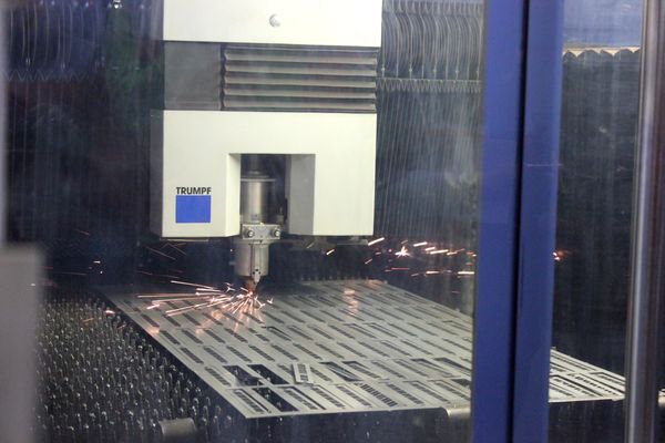 В отдельном цехе из листового металла создают шкафы и стойки разных размеров и для разных целей. Листы раскраивают на лазерных и пробивных станках. «Лазерные станки работают медленнее, но на них можно готовить экспериментальные изделия или изделия для ограниченной серии. А на пробивных станках мы можем быстро готовить большие партии продукции. Если же нам нужно запустить новую серию, мы можем сами изготовить специальные сверла и использовать на станках револьверного типа», - пояснил А.Анисимов.