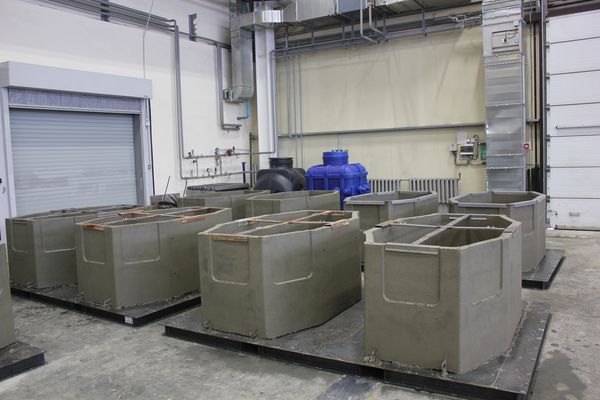Кроме того, на «Связьстройдетали» делают и бетонные конструкции – канализационные коллекторы и кольца для канализационных люков. Для этого используются две методики. Первая – классическая. В металлическую форму, в которую уложены сваренные металлические сетки, заливается раствор, затем включается виброплита, которая помогает сократить количество включений воздуха в конечном продукте, после чего раствор доливают до тех пор, пока форма не заполнится до конца. Затем изделие в форме отправляют на просушку, а оттуда - заказчику.