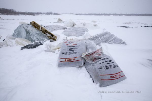 Но 13 апреля в соцсетях появились фотографии, опровергающие заявления ведомства. На страничке жителя Нарьян-Мара Андрея Николаева были опубликованы снимки, на которых видны всплывшие в полынье упаковки с мешками, на которых написано: буровой реагент ФХЛС-М.