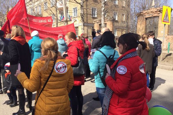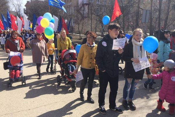 «Подав заявку профсоюзам, мы были с радостью зачислены в колонну, но и были вычеркнуты из списка на следующие сутки. Видимо дошел до профсоюзов слух о нашей акции «Троянская коляска», – говорится в сообщении. – Пройдя по козьим тропам знакомств, мы все же опять были включены, но опять услышали отказ уже перед самим шествием. Недолго думая, активисты примкнули к общей колонне, не спрашивая разрешений, в качестве трудящихся граждан со своей гражданской позицией за отмену 144-го закона».