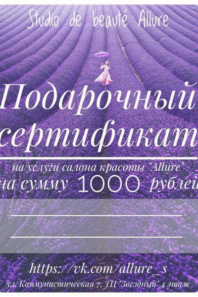 Студия красоты Allure находится по адресу: улица Коммунистическая, 7 (ТЦ «Звездный», 4 этаж). Ознакомиться с акциями и задать вопросы можно в группе во «ВКонтакте».