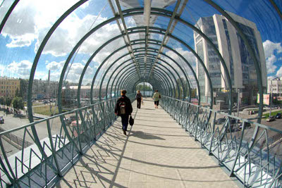 Минусом надземных переходов является высота и большое количество ступенек. Чтобы обслуживать эскалаторы и лифты, требуются дополнительные затраты. Кроме того, труба из поликарбоната в жару превращается в теплицу.