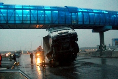 Наличие надземного перехода не гарантирует безопасность участникам дорожного движения. В начале года в Химках водитель грузового самосвала задел поднятым кузовом надземный переход, который затем обрушился на кабину машины.