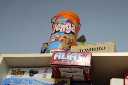 Помещение антикафе разделено на две зоны — игровую и зону отдыха. В первой из них находятся ресепшн, столы для игр, компьютерные приставки и множество кресел-подушек.