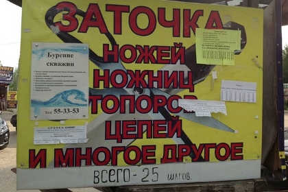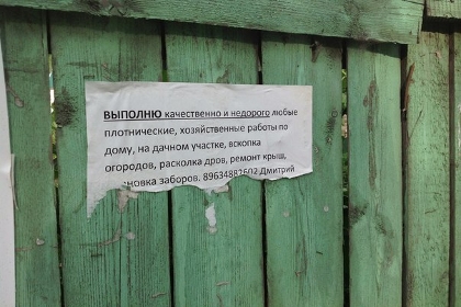 По объему занятых площадей конкуренцию им могут составить объявления об услугах рук, которые растут из нужного места. Грузоперевозки, вывоз мусора, бурение скважин, так называемые дачные работы (заливка фундамента, облицовка дома, кровельные работы и даже «вскопка огородов» и «расколка дров»), ремонт бытовой и оргтехники.