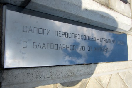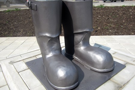 Новая достопримечательность, победившая в общенародном голосовании проекта «Городские легенды», появилась между жилыми домами по проспекту Бумажников на въезде в Эжвинский район Сыктывкара. Изготовленные из сплава кованого железа сапоги немного больше стандартных и весят более 50 килограммов. Сделаны они так, чтобы люди могли просунуть в них ноги. При этом дождевая вода и мусор не будут скапливаться внутри скульптуры.