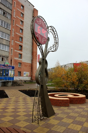 Несколько скамеек и фонарей, окружающих часы, закрепленные внутри кованой гитары и нотного стана, соединенных в форме сердца, - так выглядит, если описывать одним предложением, новый и последний в этом году объект «Городских легенд».