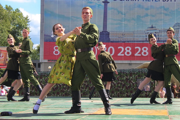 Музыкально-танцевальной была площадка «под часами». Здесь царило жанровое, возрастное, географическое и тематическое разнообразие. Военные песни сменялись рок-н-роллом, национальные хороводы – танцами в спортивных костюмах.