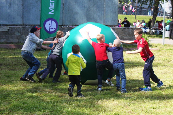 Самой инновационной стала площадка «МегаФона». Квесты, различные способы фотографирования, погружение в новую реальность благодаря очкам Oculus, катание на сигвеях – людям было чем заняться. Но самым зрелищным оказался детский футбол – огромный мяч приходилось не пинать, а перекатывать целой командой.