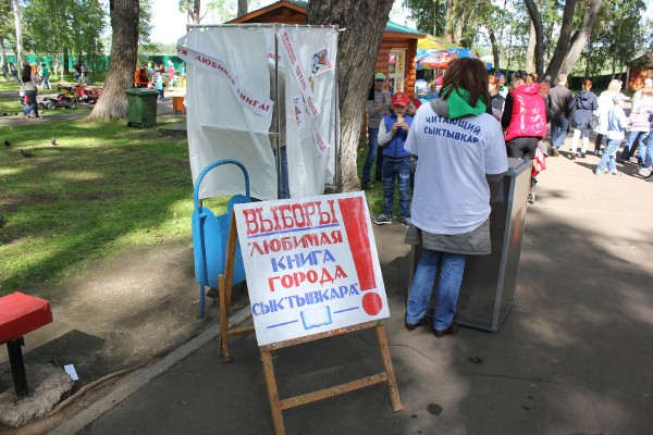 Основными темами площадки стали любовь к Сыктывкару (юбилей, как-никак) и к книгам. Поэтому всем проходящим мимо рекомендовали проголосовать за любимую книгу столицы Коми, заглянуть в передвижную библиотеку и полистать книги под гул мотора.