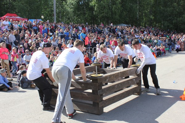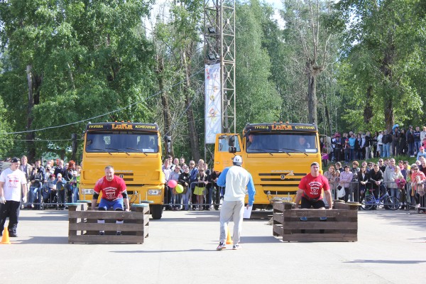 Так же традиционно состоялись соревнования по силовому экстриму, который собрал, пожалуй, самое большое число зрителей. Крупногабаритные мужчины сдвигали с места тяжелые предметы, проверяли свои организмы на силу и выносливость и громко пыхтели на радость собравшихся зевак.