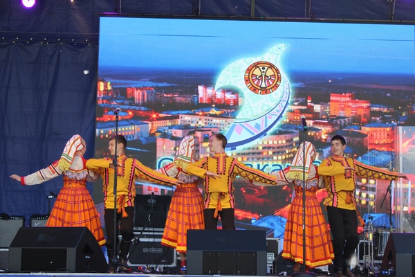 Когда все коллективы разошлись, на сцене началась праздничная программа: выступали танцевальные и вокальные коллективы.
