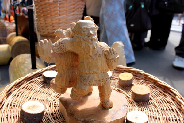 На «женской» половине площади в основном велась торговля различными украшениями и вещицами народных и не очень промыслов. Ремесленники представляли изделия из бересты и дерева — заявленной тематики экофестиваля. На продажу выставляли и более современные товары, например, футболки с принтами «Республика Коми» или совами, исполненными в коми орнаменте.
