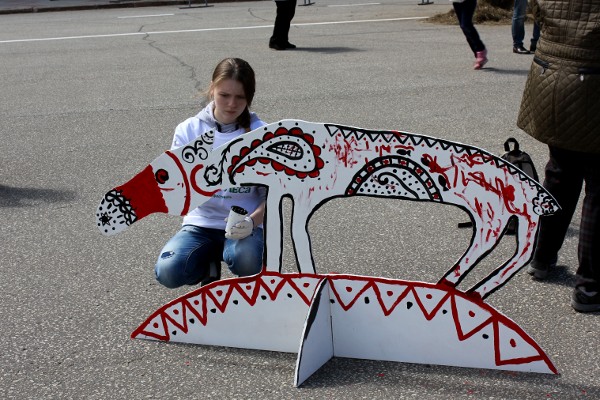 Фишку с разукрашиванием деревянных животных организаторы сохранили, но на этот раз она не настолько заинтересовала публику.